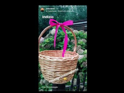 Attorno al cookin show di Antonella Clerici vige il massimo riserbo, forse per rendere il tutto all’altezza delle aspettative dei fan. L’unica cosa certa, almeno per ora, sarebbero delle piccole cose che sta portando in studio direttamente dal suo bosco come ad esempio questo cestino di paglia decorato con un nastro rosa.