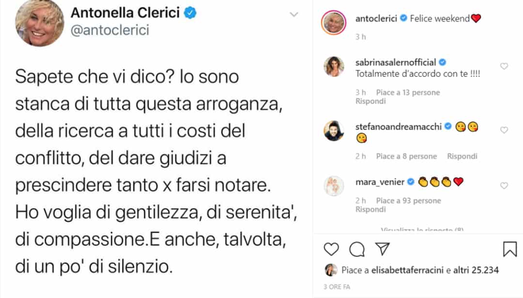 Dopo le dichiarazioni rilasciata da Maurizio Costanzo, insieme a una nuova polemica parallela, ecco che anche Antonella Clerici decide di rompere il silenzio e pubblicare un duro sfogo su Twitter.
