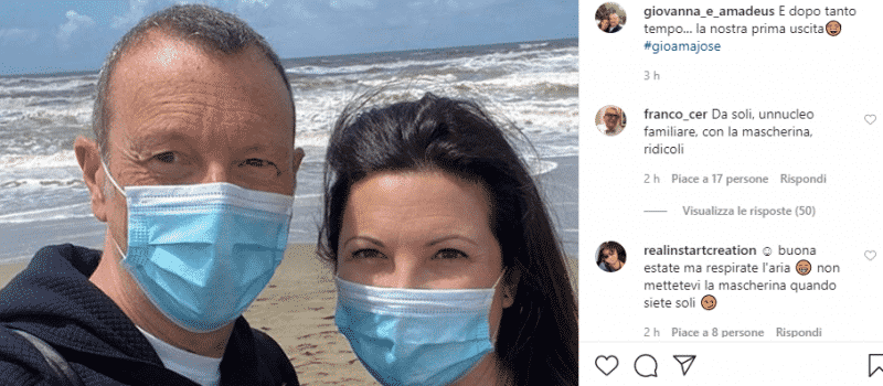 Sotto ad una foto di Amadeus e di Giovanna, un utente Social avrebbe scritto “Da soli, un nucleo familiare, con la mascherina. Ridicoli“. Effettivamente sembra che Giovanna abbia postato una fotografia che la ritrae in compagnia del marito e del bambino, indossando per l’occasione due mascherine chirurgiche. Ovviamente la Civitillo non ha perso tempo nel rispondere al follower dicendo “Che ne sa lei con chi eravamo? Sappiamo bene quando e come usare mascherina!”. Guardando semplicemente la foto effettivamente, sembra davvero difficile capire se Giovanna e Amadeus fossero da soli o se in compagnia di altre persone e quindi trattandosi di un momento piuttosto particolare, tenere la mascherina anche se non è obbligatorio è comunque necessario.