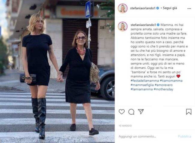 Nello specifico, in questo scatto davvero meraviglioso si vede Stefania Orlando che cammina insieme alla sua mamma per strada mano nella mano. È facile capire da questa foto come il legame tra le due sia davvero grande ed a confermarlo è stata la stessa Stefania che ha fatto una dedica davvero da urlo.“Mi hai sempre amata, salvata, protetta come solo una madre sa fare. Abbiamo tante foto insieme, ma ho scelto questa perché oggi sono io che ti prendo per mano e sei tu che hai bisogno di amore e attenzioni. Oggi sei tu la mia bambina e forse mi sento un po’ mamma anche io”. Questo le parole scritte da Stefania Orlando che con le stesse ha voluto celebrare la festa della mamma.