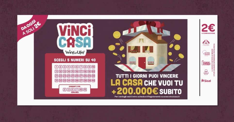 L’estrazione avviene ogni sera alle ore 20.00. È possibile giocare in ricevitoria oppure anche on-line e ogni schedina ha un costo di €2. Tuttavia, ci sarebbe anche la possibilità di vincere altri premi. Nel caso in cui si dovessero vincere 4-3 ma anche soltanto due numeri della combinazione estratta, ci sarà la possibilità di vincere un premio in denaro. Ovviamente il primo premio è di €500.000 di cui 200.000 in denaro che si potranno utilizzare come meglio si preferisce. Con la restante parte del premio poi si potrà acquistare la casa che si vuole, in qualsiasi posto d’Italia. Ci sarebbe soltanto un vincolo al quale bisogna attenersi, ovvero il fatto che la casa dovrà essere acquistata entro i 2 anni. La probabilità di vincere almeno un premio sembra essere di 1 su 9, mentre la probabilità di vincere il premio di prima categoria è di 1 su 658.008. Rispetto agli altri giochi e alle altre lotterie, ci sarebbe una differenza sostanziale ovvero il fatto che vincendo il premio di prima categoria, soltanto il 40% di questo viene corrisposto in denaro. L’altro 60% dovrà essere necessariamente investito nell’acquisto di uno o più immobili sul territorio italiano.