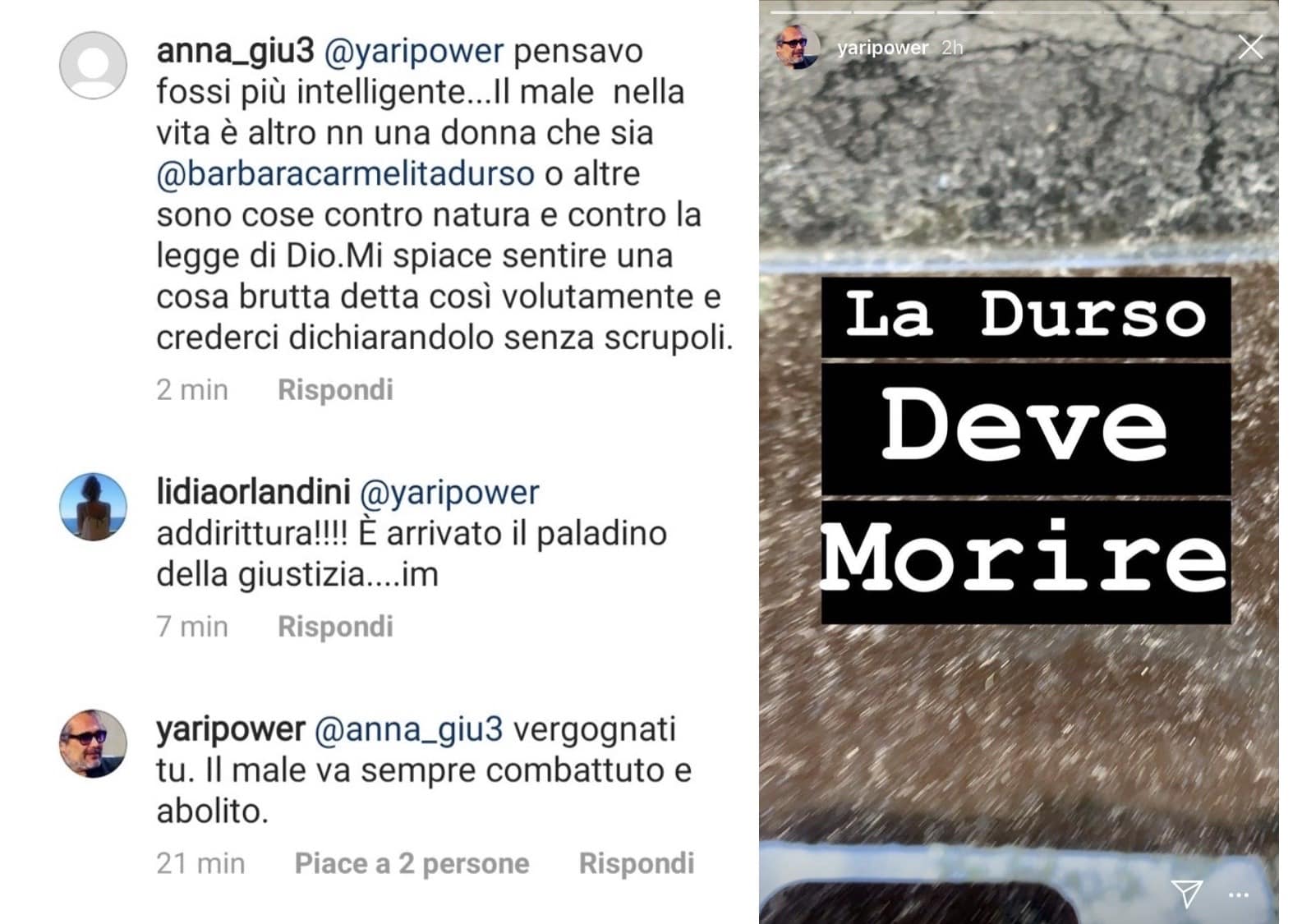 La frase ha lasciato sconvolti i fan ma anche Barbara D’Urso che è stata difesa prontamente dalla sorella Daniela che su Instagram ha condiviso la frase scritta dal figlio di Albano Carrisi e Romina Power con il seguente commento: “Dunque tu, figlio di Al Bano e Romina Power, stai dicendo che mia sorella deve morire? Quindi vuoi che mia sorella muoia? Cioè le stai augurando la morte?“. Ma il tutto non finisce qui.