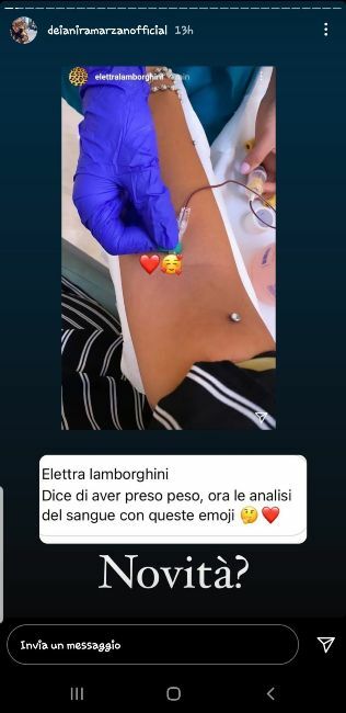 Ma non finisce qui, visto che nelle scorse ore la cantante e nipote del grande Ferruccio Larborghini, avrebbe pubblicato un’immagine che la ritrae mentre sta facendo le analisi del sangue con tanto di faccine sorridenti e cuori. Ovviamente non ci sono conferme ad oggi su questa gravidanza ma molte cose sembrerebbe facciano pensare che Elettra possa essere realmente in dolce attesa. Se così fosse, comunque sarà la stessa Elettra Lamborghini a comunicarlo al mondo intero sicuramente in modo molto particolare come è solita fare e come ci ha abituati in tutti questi anni.