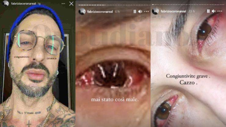 A raccontare tutto ciò è stato proprio lo stesso Corona che ha mostrato ai suoi follower su Instagram un occhio rosso e lacrimante proprio per via della congiuntivite. Nel suo caso si tratta di una malattia cronica che pare stia mettendo in forte difficoltà Fabrizio Ormai da parecchio tempo. I suoi occhi diventano molto rossi e secondo quanto riferito dallo stesso Fabrizio, accuserebbe parecchio bruciore e lacrimazione abbondante. Il giorno di Capodanno Fabrizio Corona è apparso ai suoi follower con una benda sull’occhio, mostrandosi in versione “Capitan Uncino” e condividendo con i suoi follower questo brutto momento.