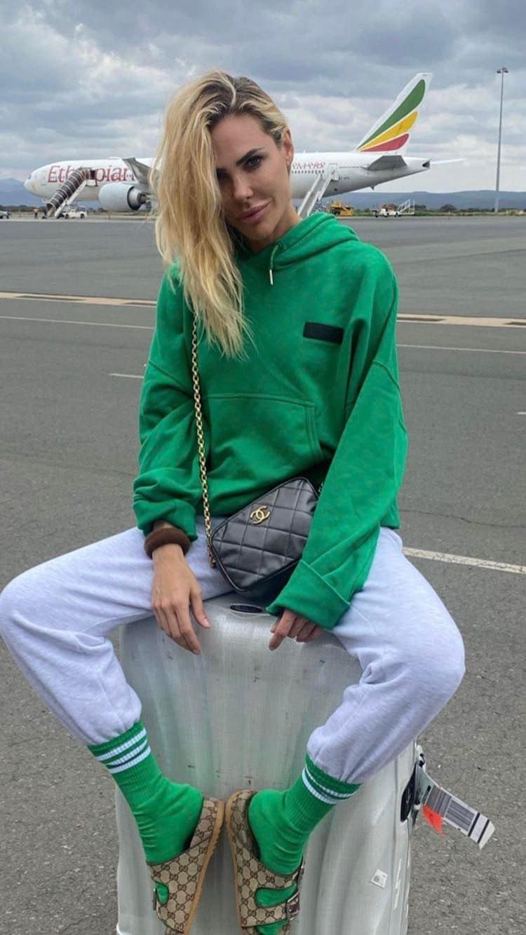 Ilary Blasi ha postato una serie di scatti aeroportuali sui social media per annunciare la sua fuga in Africa dopo la separazione. In molti hanno notato che, nonostante i grandi cambiamenti che l’hanno travolta, non ha rinunciato al suo amore per le griffe. Per partire, ha indossato una felpa oversize con cappuccio in verde smeraldo e pantaloni da tuta grigi, completati da accessori firmati. Sebbene sia partita all’insegna della comodità, non le sono mancati i dettagli di lusso.
