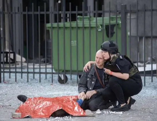 Tre civili sono stati uccisi in un raid militare russo nel quartiere Saltivskyi di Kharkiv, in Ucraina. Una persona è rimasta ferita. Lo ha riferito via Telegram il capo dell’amministrazione militare regionale Oleh Syniehubov, scrive Ukrinform. E la foto straziante del padre del bambino ucciso nel raid, inginocchiato accanto al figlio morto, è diventata virale. L’uomo stringe la mano senza vita del figlio di 13 anni, piangendo. Il ragazzo, colpito da un cecchino, è morto sul colpo. A un certo punto arriva una poliziotta, con casco e giubbotto antiproiettile, che cerca di consolarlo tenendogli la mano. Tra i feriti c’è anche la figlia maggiore dell’uomo, di 15 anni. L’uomo stava aspettando con i suoi due figli l’autobus alla fermata vicino alla moschea.