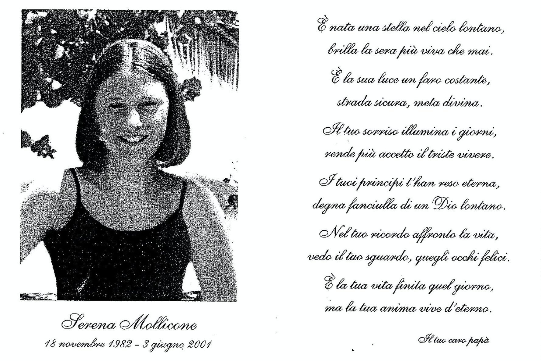 La morte violenta di Serena Mollicone è uno dei cold case più seguiti d’Italia, senza un colpevole condannato in via definitiva dopo ventuno anni, da quando il 1° giugno 2001 la donna uscì di casa per scattare una foto ortopanoramica e non fece più ritorno. Secondo l’accusa, il 1° giugno 2001 sarebbe entrata nella caserma dei Carabinieri di Arce per presentare una denuncia per droga contro il figlio dell’allora comandante. Il 3 giugno 2001 il suo corpo fu ritrovato nel bosco dell’Anitrella, tra Arce e Fontana Liri, con le fascette che le legavano mani e piedi e una busta di plastica legata al collo.