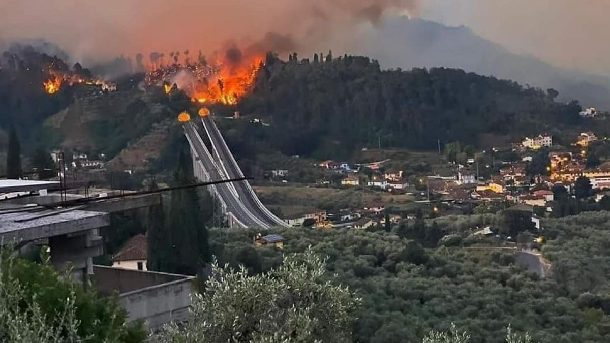 L’incendio si è esteso a tutto il bosco, costringendo all’evacuazione di decine di case e persone. Oltre alla chiusura della bretella autostradale che collega l’autostrada A11 con l’autostrada E80 tra Lucca e Viareggio, che si sono fermate a causa del forte fumo.