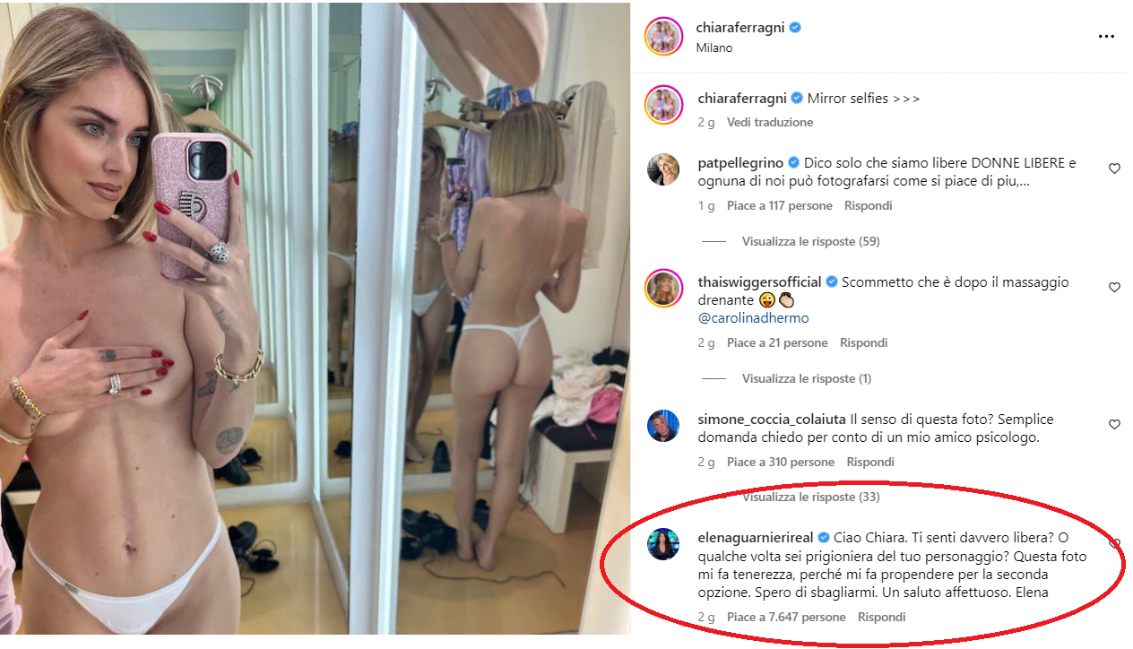 Questi sono solo alcuni dei commenti che questa foto provocatoria ha suscitato. Mentre alcuni difendono il diritto di Chiara Ferragni di esprimersi liberamente, altri pongono interrogativi sul significato dietro queste immagini. In ogni caso, l’episodio solleva riflessioni interessanti sul concetto di libertà personale e sulla rappresentazione di sé stessi sui social media.