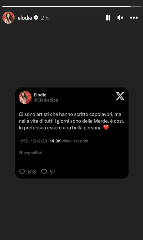 Elodie, nota per il suo impegno sulla libertà del corpo femminile e la sua difesa contro le critiche relative all’ostentazione, ha replicato affermando: “Ci sono artisti che hanno scritto capolavori, ma nella vita di tutti i giorni sono delle Merde, è così. Io preferisco essere una bella persona.” Il suo commento sembra essere una risposta diretta alle parole di Paoli.