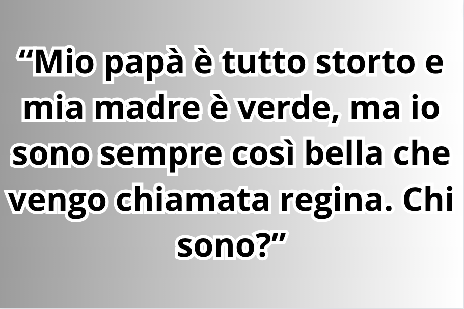 “Mio papà è tutto storto e mia madre è verde, ma io sono sempre così bella che vengo chiamata regina. Chi sono?”