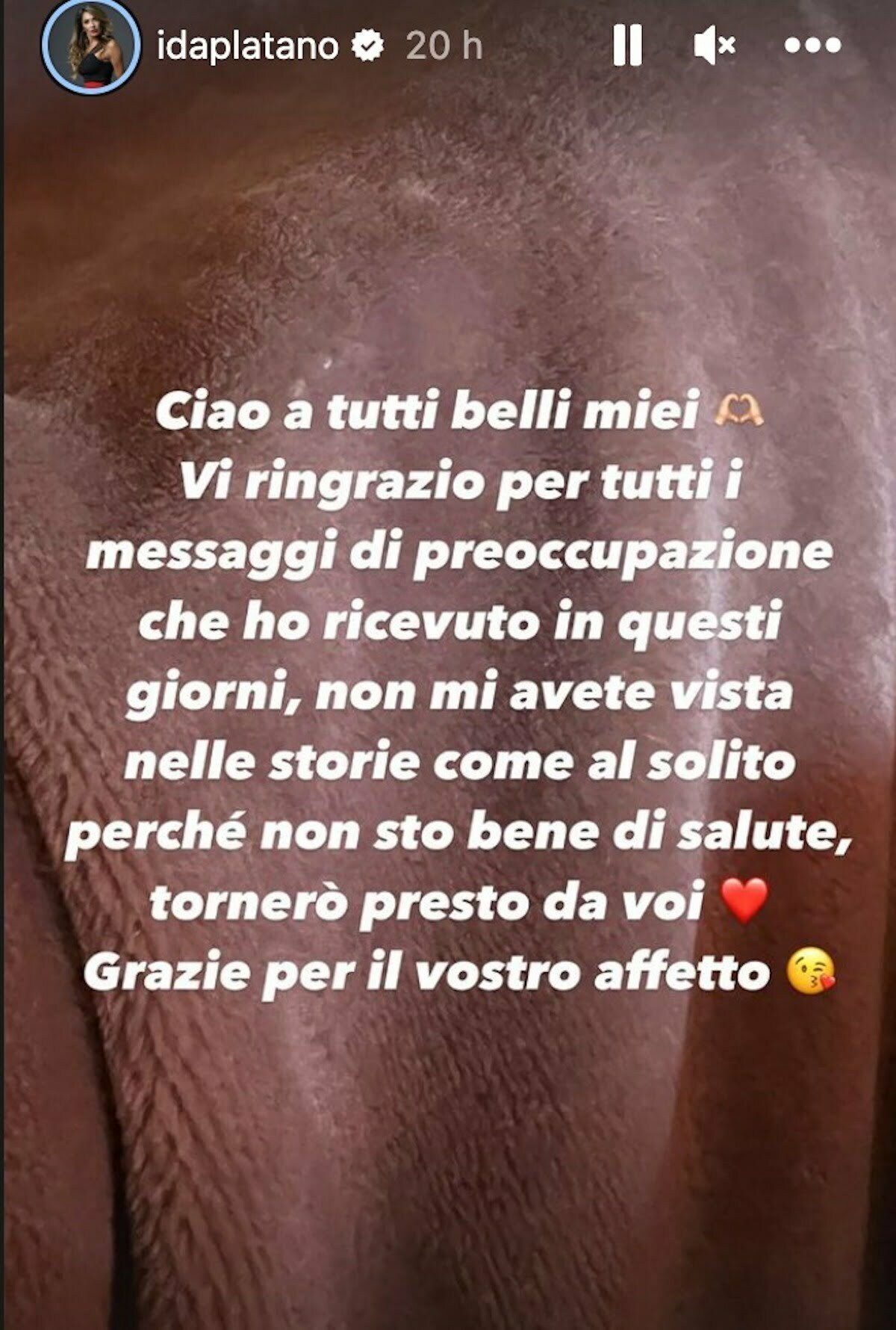 Fortunatamente, Ida Platano ha rotto il silenzio attraverso le sue storie social, spiegando il motivo della sua scomparsa. Ha scritto: “Ciao a tutti belli miei. Vi ringrazio per tutti i messaggi di preoccupazione che ho ricevuto in questi giorni, non mi avete vista nelle storie come al solito perché non sto bene di salute, tornerò presto da voi. Grazie per il vostro affetto.”