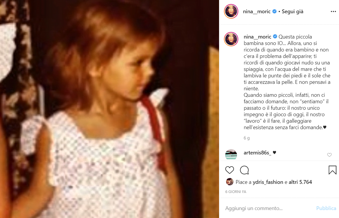 La fotografia ritrae una bambina dai lunghi capelli castani lisci, con uno sguardo dolce, ma già deciso, nonostante non fosse rivolto direttamente alla camera. È Nina Moric, un nome che negli ultimi tempi è spesso balzato agli onori delle cronache.