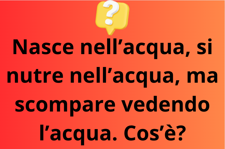 “Nasce nell’acqua, si nutre nell’acqua, ma scompare vedendo l’acqua. Cos’è?”