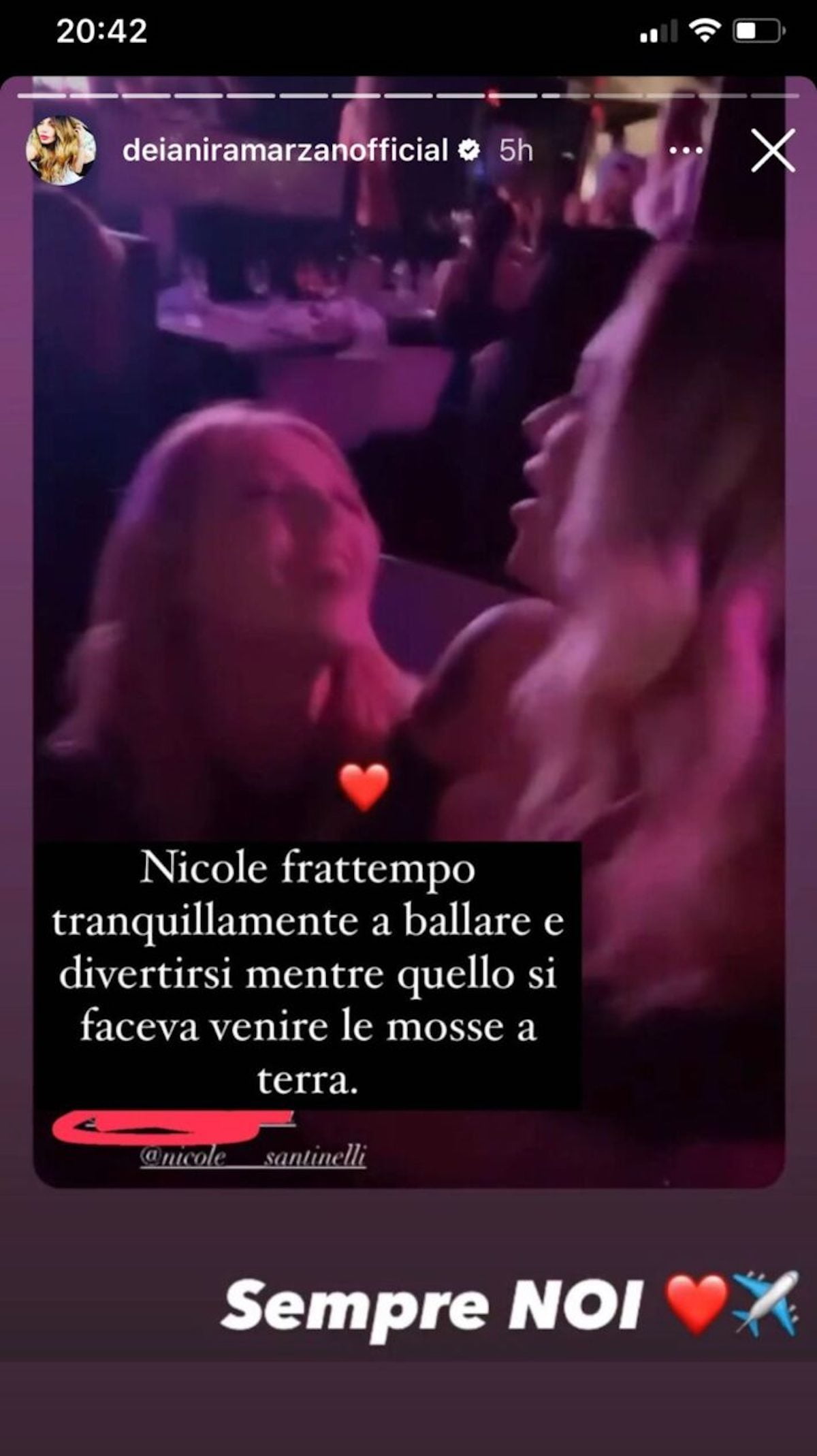 Recentemente, è emersa un’altra segnalazione che sta scatenando discussioni sul web riguardo a Nicole Santinelli. Una foto pubblicata da Deianira Marzano ha catturato l’attenzione dei fan. Nello scatto, l’ex tronista di Uomini e Donne appare divertirsi in una discoteca. Alcuni utenti ipotizzano che questa scelta di Nicole possa essere stata motivata dal desiderio di evitare critiche da parte di un pubblico che non ha mai creduto nelle sue buone intenzioni.