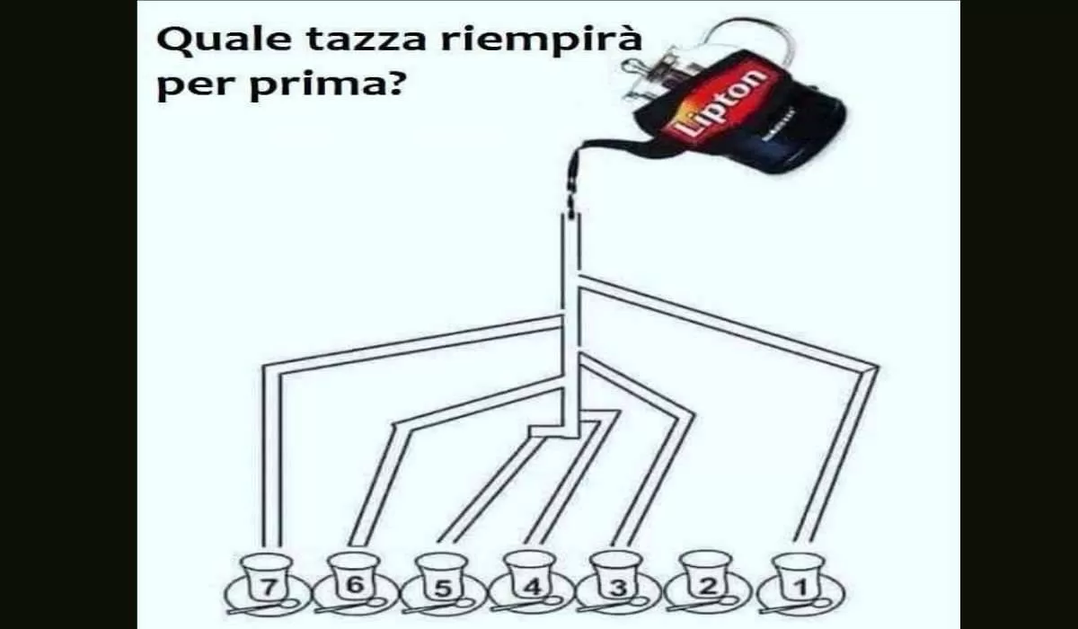 Osserva attentamente l’immagine all’inizio dell’articolo. Rappresenta la situazione che devi risolvere. Una teiera di tè nero sta per riempire alcune tazze da tè collegate da un sistema di tubi. Tuttavia, non tutte si riempiranno alla stessa velocità. Il tuo compito è indovinare quale delle tazze si riempirà per prima. Se vuoi aumentare la sfida, metti un timer e cerca di risolvere l’indovinello entro 10 secondi. Puoi persino creare una classifica dei tempi migliori per sfidare i tuoi amici.