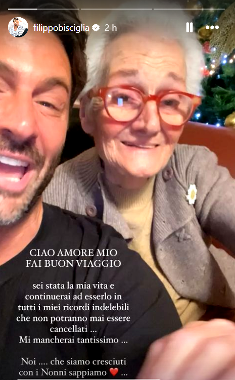 Bisciglia ha condiviso diverse foto che ritraggono momenti significativi della loro relazione. Una delle immagini mostra il conduttore da giovane mentre dà un affettuoso bacio sulla guancia alla nonna, mentre un’altra lo ritrae da bambino mentre lei lo tiene tra le braccia durante un bagno al mare. Questi scatti sono stati accompagnati da un commovente messaggio d’addio.