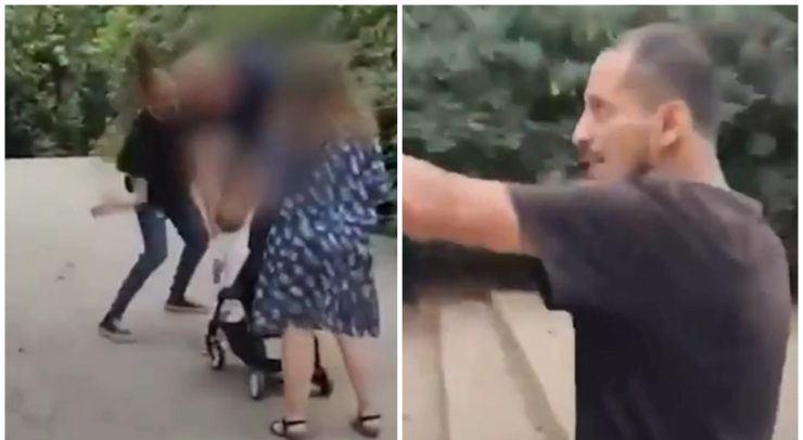 La scena, catturata in video da un passante, mostra l’uomo avvicinarsi improvvisamente al passeggino, colpire la bambina e gridare minacce. I nonni, visibilmente scossi, sono fuggiti cercando di proteggere la piccola. L’aggressore non si è limitato a questo singolo atto, ma ha anche colpito altre persone presenti nel parco.