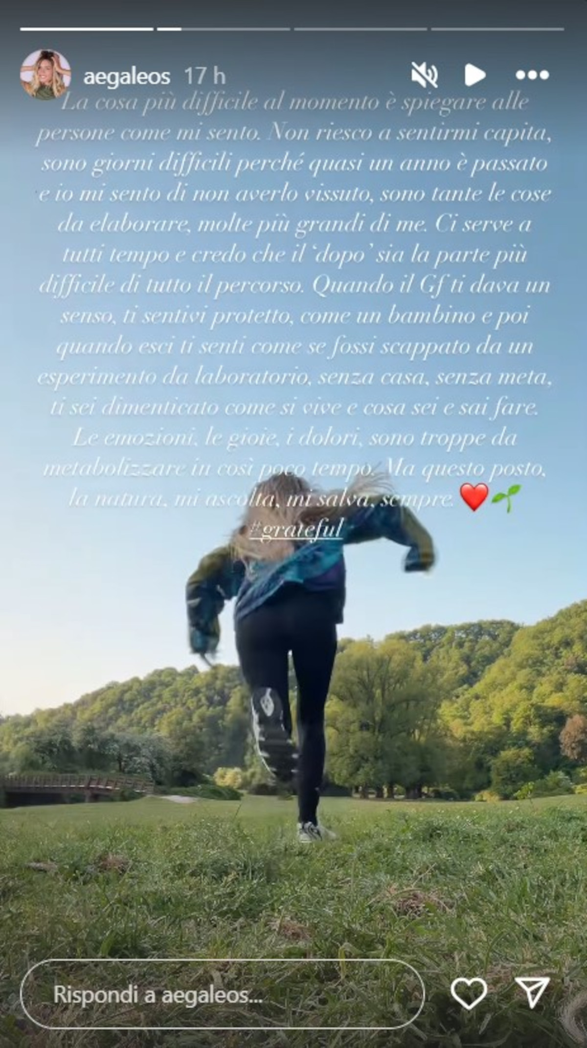 In questo periodo di transizione, Anita ha trovato conforto nella natura, un elemento che ha enfatizzato per la sua capacità di ascoltare e salvare. “Le emozioni, le gioie e i dolori sono troppi da metabolizzare in così poco tempo ma questo posto… la natura mi ascolta e mi salva sempre. Le sono grata,” ha aggiunto, riconoscendo un luogo di pace in mezzo al caos.