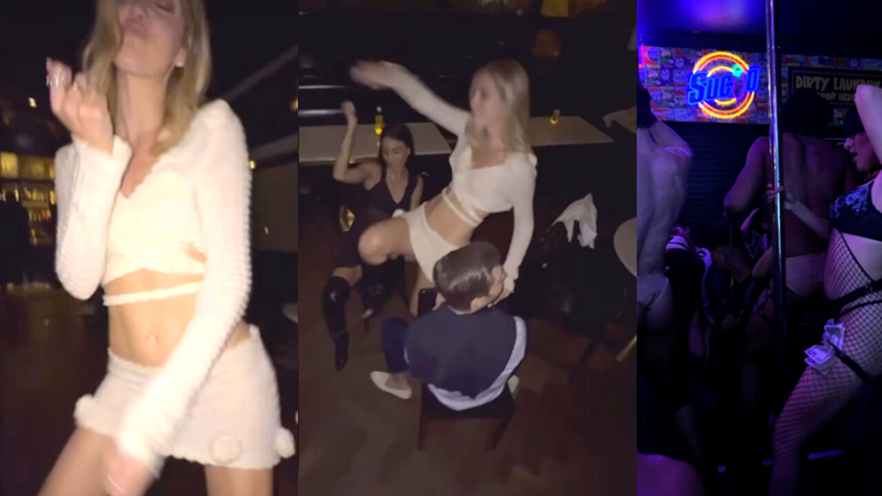 Mentre Chiara si diverte, Chiara Biasi, amica e collega, non è da meno e condivide clip di sé mentre esegue una lap dance nello stesso ambiente. Le immagini successive mostrano l’atmosfera calda del locale, con persone che danzano attorno a un palo, vestite solo di biancheria intima, in una scena che definisce bene il tono della serata: divertimento, musica e cocktail.