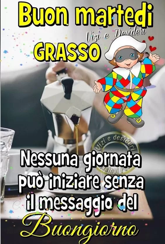 “Buongiorno, giovedì grasso! Nutri la tua giornata con pensieri positivi e lascia che la tua felicità cresca come una festa in maschera.”