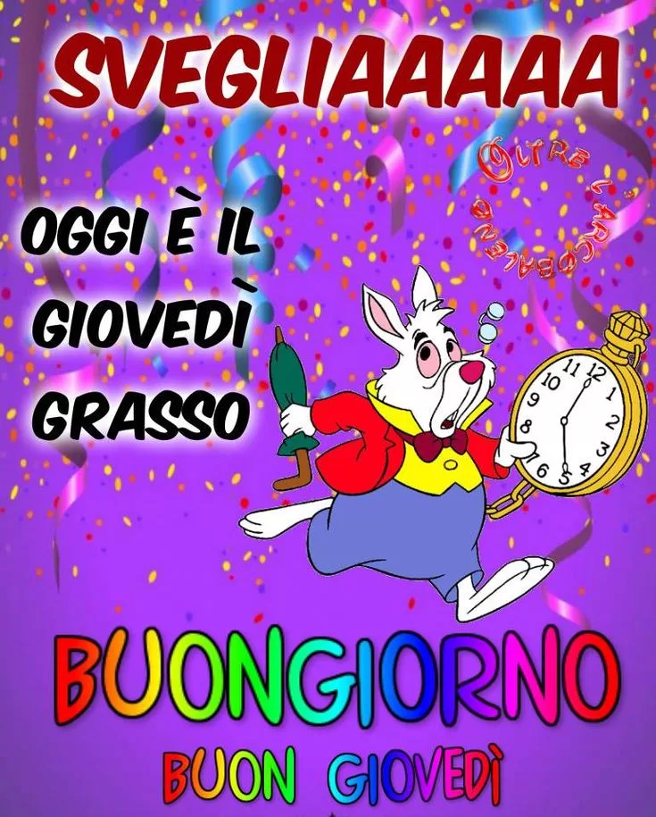 “Buongiorno, giovedì grasso! Che la tua giornata sia colma di buonumore, risate contagiose e dolci momenti di allegria.”