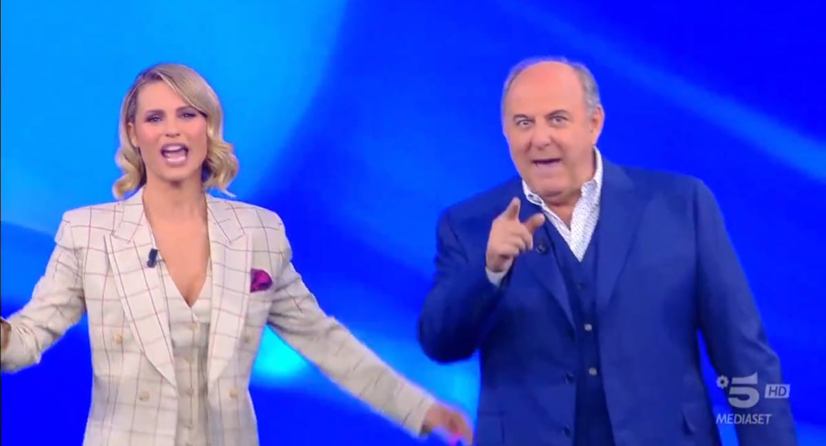Nella serata inaugurale di “Io Canto Family”, Gerry Scotti sorprende il pubblico con battute e frecciatine, tra umorismo e polemiche televisive, insieme a Michelle Hunziker e Fabio Rovazzi.