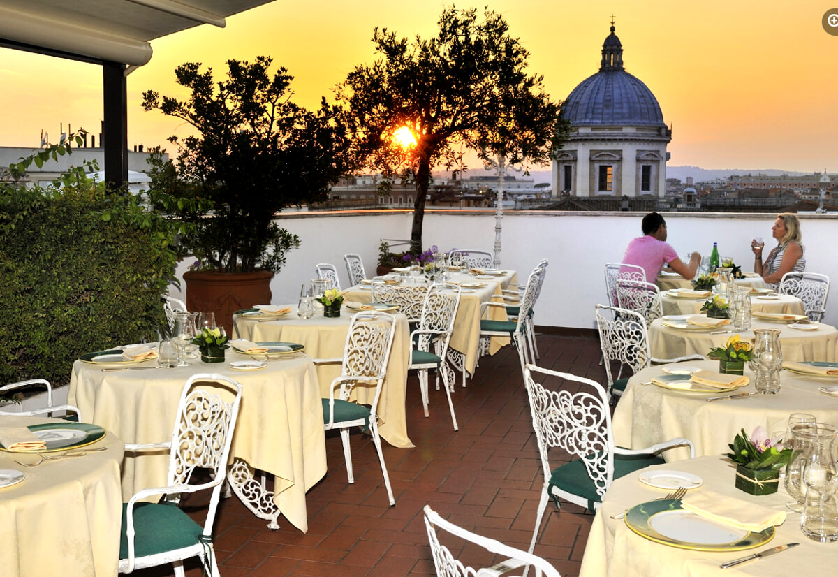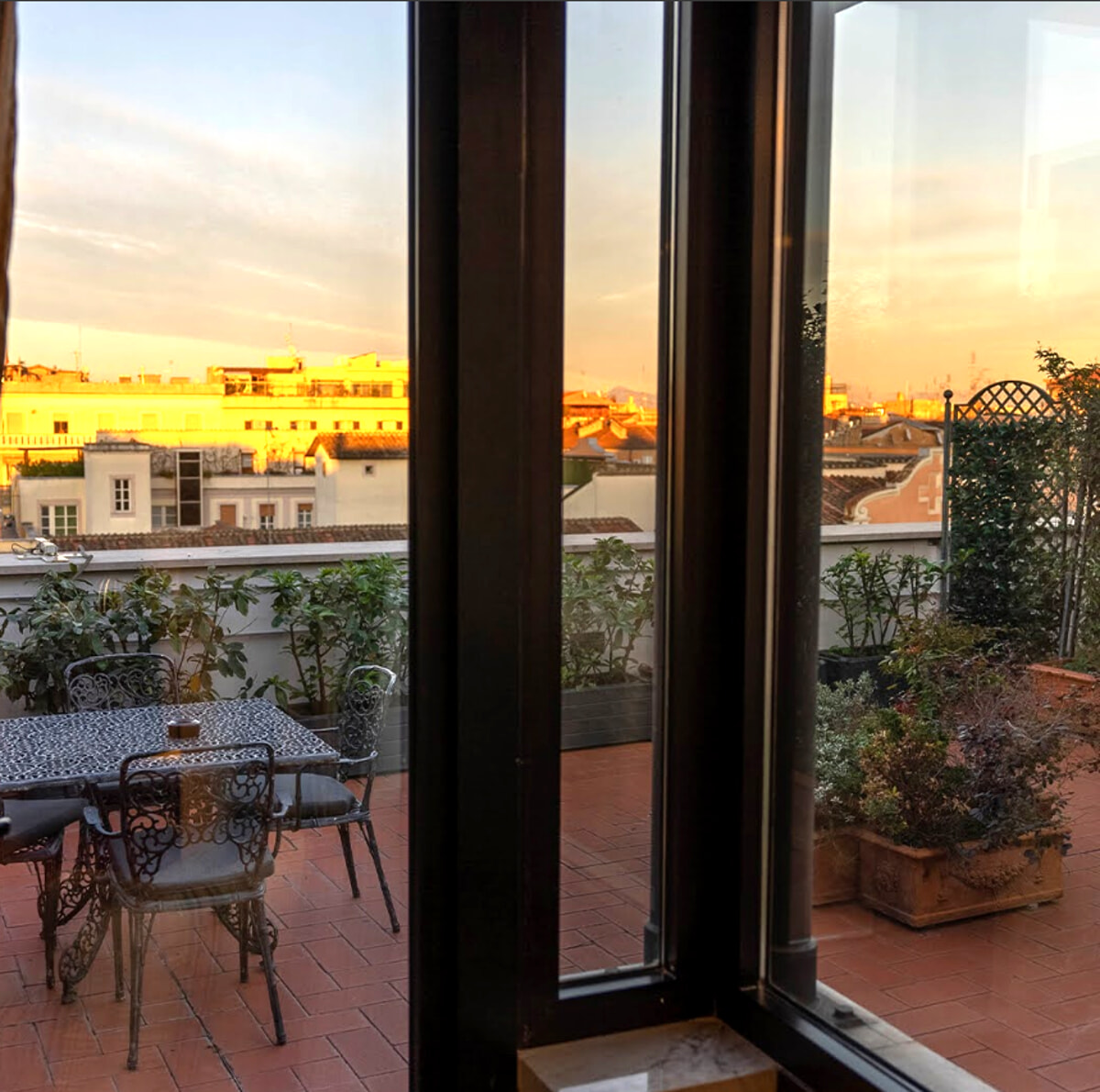 Dopo il rito ufficiale, il ricevimento si è trasferito sulla terrazza dell’hotel Mecenate Palace, che offre una vista mozzafiato sulla Basilica di Santa Maria Maggiore. I festeggiamenti sono stati raccolti ma eleganti, con gli sposi che hanno posato per le fotografie e hanno tagliato una torta nuziale decorata con i loro nomi.