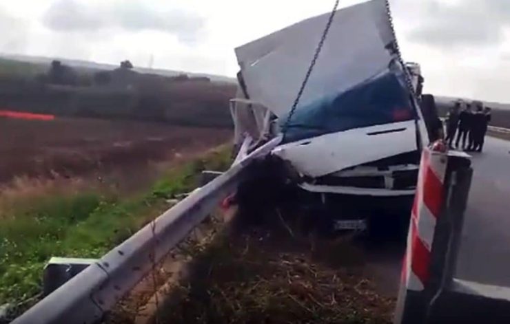 Un grave incidente stradale ha avuto luogo nelle prime ore della mattina di lunedì 28 ottobre sulla strada statale 16 Adriatica, tra Foggia e San Severo. Un autocarro, con a bordo tre uomini, si è schiantato contro il guardrail nella zona del bivio di Ripalta, nel comune di Lesina. L’incidente ha causato la morte di due trentenni, mentre il terzo occupante è rimasto ferito, ma non sarebbe in pericolo di vita.