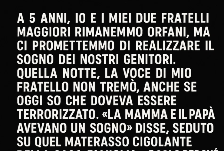«La mamma e il papà avevano un sogno» disse, seduto su quel materasso cigolante della casa-famiglia. «E solo perché non ci sono più… non significa che il loro sogno debba morire.»