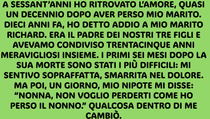 Dieci anni fa, ho detto addio a mio marito Richard. Era il padre dei nostri tre figli e avevamo condiviso trentacinque anni meravigliosi insieme. I primi sei mesi dopo la sua morte sono stati i più difficili: mi sentivo sopraffatta, smarrita nel dolore. Ma poi, un giorno, mio nipote mi disse: “Nonna, non voglio perderti come ho perso il nonno.” Qualcosa dentro di me cambiò.