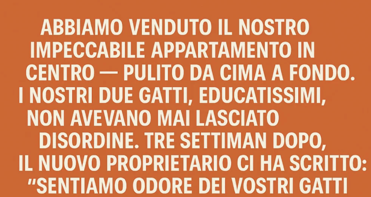 Avevamo venduto il nostro impeccabile appartamento in centro città — pulito da cima a fondo. I nostri due gatti, educatissimi, non avevano mai lasciato un odore fuori posto.