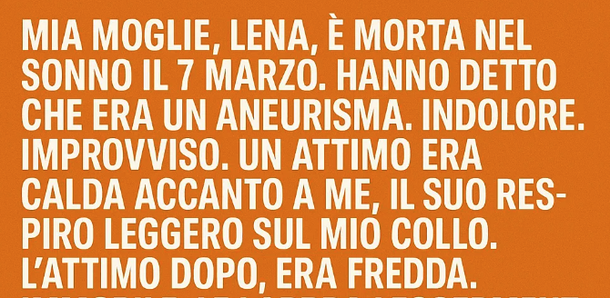 Mia moglie, Lena, è morta nel sonno il 7 marzo. Hanno detto che era un aneurisma. Indolore. Improvviso. Un attimo era calda accanto a me, il suo respiro leggero sul mio collo. L’attimo dopo, era fredda. Immobile. Le labbra leggermente socchiuse, come se stesse per dire qualcosa.