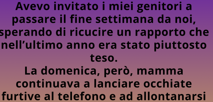 Rimasi immobile per qualche secondo, con le gambe come svanite sotto di me. C’ero io, l’aria fredda del mattino e la voce di mia madre che diceva qualcosa che non apparteneva a un “tranquillo weekend in famiglia”.
