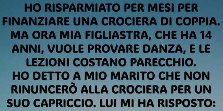 Avevo messo da parte ogni centesimo per mesi, con l’obiettivo di finanziare una crociera per due. Ma poi, mia figliastra di 14 anni ha espresso il desiderio di iniziare un corso di danza. Le lezioni, però, sono molto costose.
