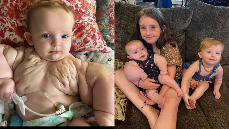 Armani, che ora ha nove mesi, è soprannominata “baby hulk” o “mini hulk” perché il suo raro difetto congenito, chiamato linfangioma, l’ha fatta sembrare una baby bodybuilder, ha riferito Caters.