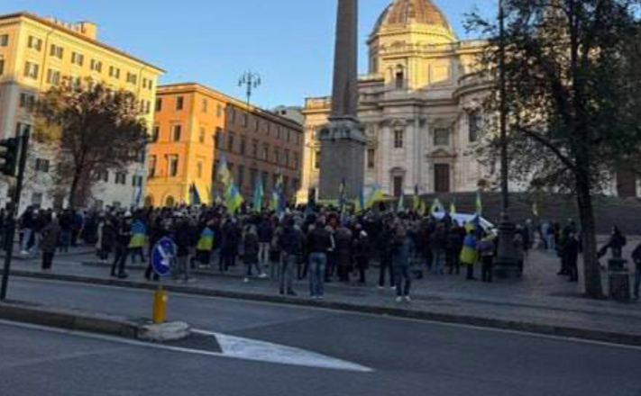 Decine di bandiere gialle e blu colorano piazza dell’Esquilino, dove la comunità ucraina in Italia organizza una primissima manifestazione nel giorno in cui a Ginevra si avviano le trattative sul piano Witkoff.