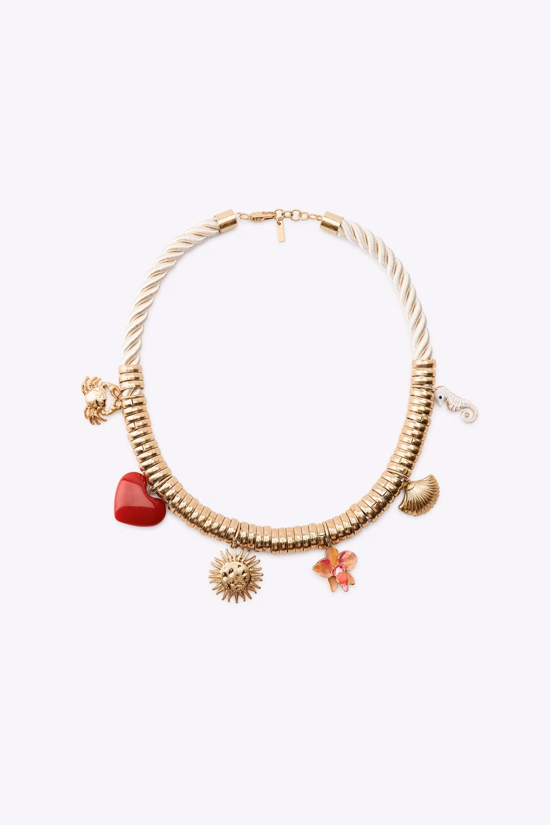 Nonostante la sua nota passione per i marchi di lusso, Chanel Totti ha adottato un approccio più semplice e accessibile durante questa vacanza. I fan hanno notato un cambiamento nel suo stile, che si è orientato verso un’estetica più essenziale e low-cost. Questo dettaglio ha attirato l’attenzione soprattutto grazie a un accessorio particolare: una collana acquistata da Zara, proposta ora in saldo a soli 3,95 euro (il prezzo originale era di 19,95 euro). Il gioiello è caratterizzato da un cordoncino decorato con elementi metallici circolari e charms ispirati al mondo marino, tra cui un sole e un granchio.
