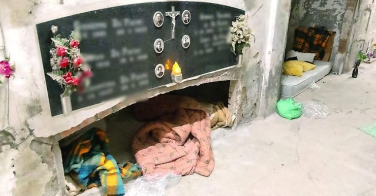 Tra le lapidi, un materasso: la vita (e la sopravvivenza) nei loculi vuoti