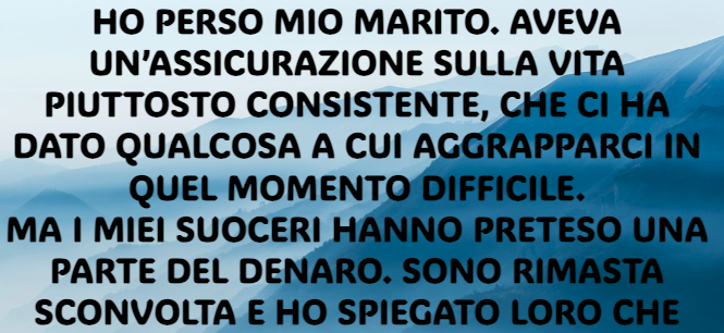 Ma i miei suoceri hanno preteso una parte del denaro. Sono rimasta scioccata e ho spiegato loro che dovevo pensare prima di tutto ai nostri figli. Da lì sono iniziati i sensi di colpa, le frecciatine, le pressioni.