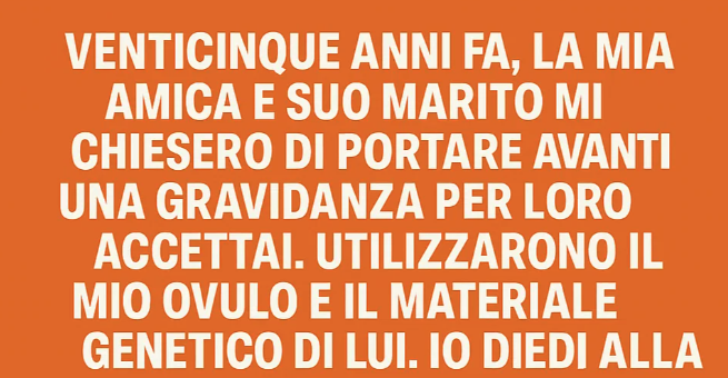 Bella è rimasta ore. Le ho raccontato di come avevo conosciuto i suoi genitori all’università, di tutte le difficoltà della fertilità, del pianto notturno di sua madre e di come ho sentito crescere in me la decisione di aiutarli. Le ho spiegato il procedimento, del mio uovo, sapendo che quella bambina sarebbe stata sangue del mio sangue, ma figlia loro. Ho cercato di nascondere le emozioni, di essere forte, di non affezionarmi troppo. Ma ci sono riuscita solo in parte. L’ho amata con tutta me stessa.