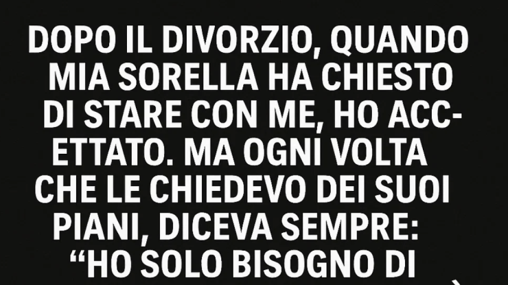 Dopo il divorzio, quando mia sorella mi ha chiesto di stare da me per un po’, ho accettato senza esitare. Ogni volta che le chiedevo dei suoi piani, rispondeva: «Ho solo bisogno di mettere da parte ancora qualcosina.»