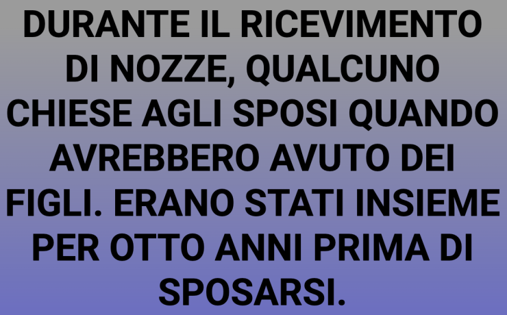 Durante il ricevimento di nozze, qualcuno chiese agli sposi quando avrebbero avuto dei bambini. Erano stati insieme per otto anni prima di sposarsi.