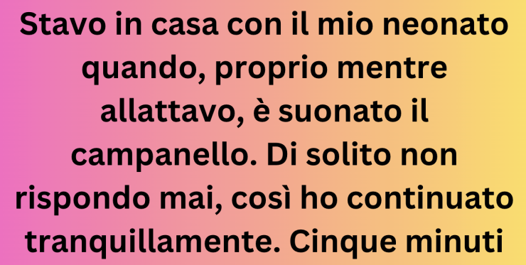 Ero a casa con la mia neonata quando suonò il campanello, proprio mentre stavo tirando il latte. Non rispondo mai in quelle situazioni, quindi continuai. Cinque minuti dopo, sentii una voce sconosciuta che parlava con mio marito al piano di sotto. Poi lui salì di corsa, prese la bambina tra le braccia e disse soltanto: “Scusa, non ho…”