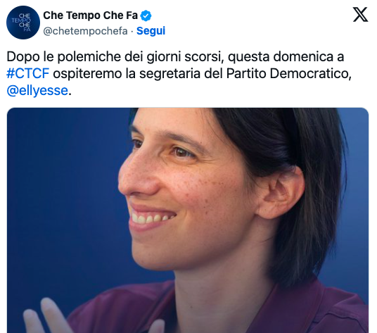Nonostante l’entusiasmo di Fazio per la partecipazione della leader democratica, le reazioni sui social non si sono fatte attendere. Molti utenti hanno ironizzato sull’ennesima ospitata della Schlein in televisione, criticando quella che viene percepita come una tendenza del programma a favorire una certa area politica. Tra i commenti più diffusi si leggono osservazioni come: “Giusto, mica potevate negare una marchetta al Pd!”, oppure “Sta diventando sempre più un programma di propaganda politica”, fino a “Un motivo in più per non guardarlo”.