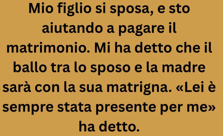 Mio figlio sta per sposarsi e io sto aiutando a pagare il matrimonio. Mi ha detto che farà il ballo dello sposo con la sua matrigna. «Lei c’è sempre stata per me», ha detto.