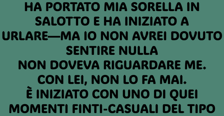 L’aria in salotto si è fatta più densa. Lo stomaco si è chiuso, come se fossi entrato in una scena a metà, senza conoscere la trama. Ho guardato mia zia, seduta sulla poltrona con il telefono in mano come fosse un’ancora di salvezza. Era confusa quanto me.