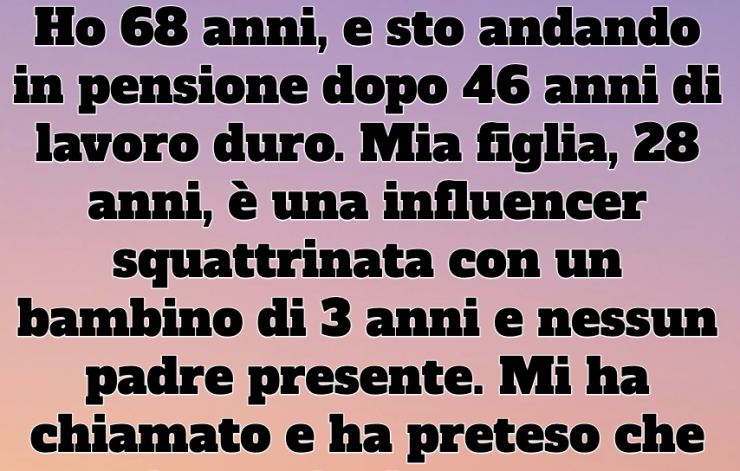 Ho 68 anni, e sto andando in pensione dopo 46 anni di lavoro duro. Mia figlia, 28 anni, è una influencer squattrinata con un bambino di 3 anni e nessun padre presente. Mi ha chiamato e ha preteso che continuassi a lavorare per “garantire a suo figlio una vita decente.” Le ho detto di no. Lei ha sbottato: “Allora preparati al peggio.” Il mattino dopo, il telefono ha squillato.