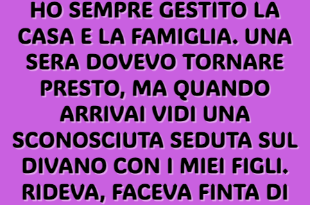 Ho sempre gestito la casa e la famiglia. Una sera dovevo tornare presto, ma quando arrivai vidi una sconosciuta seduta sul divano con i miei figli.