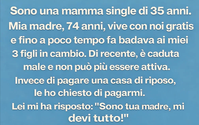 «Questo è quello che ti meriti per essere ingrata! Mi sono occupata dei tuoi figli per anni, e ora che non servo più, mi butti via!»